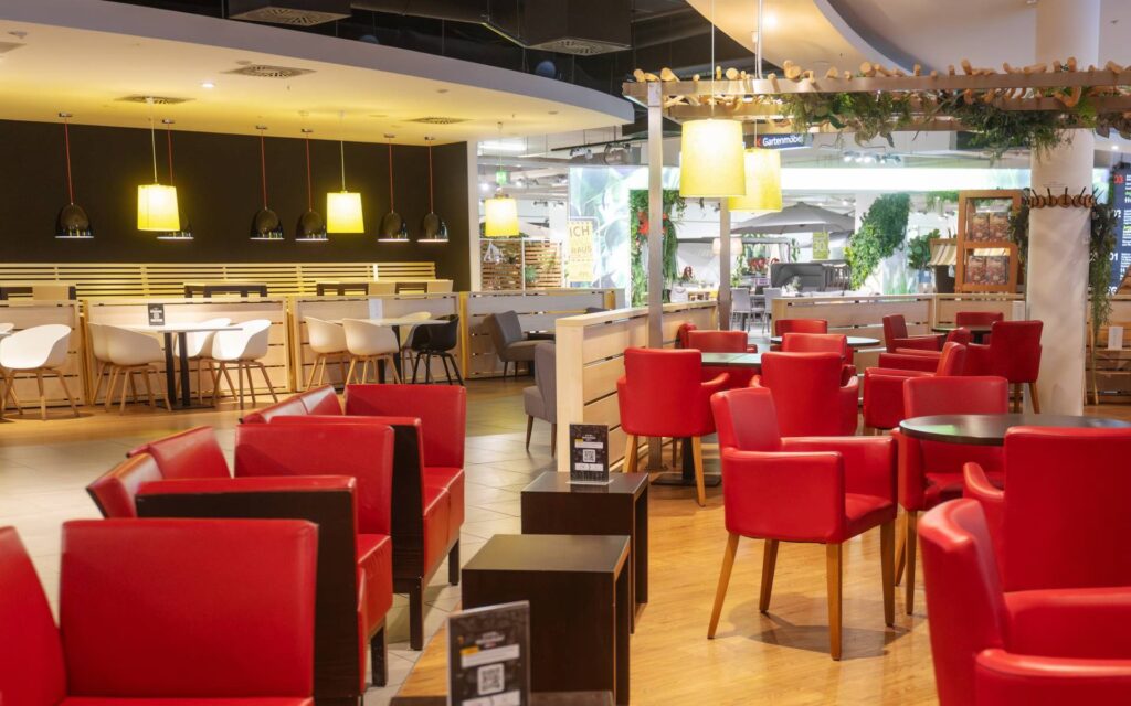 Das Restaurant Nordlicht befindet sich im ersten Obergeschoss von Dodenhof Kaltenkirchen. Es wurde konzipiert, um den Besuchern eine angenehme Pause vom Einkaufen zu ermöglichen oder den Tag entspannt zu beginnen. Die Einrichtung besticht durch ein modernes, nordisches Design, das eine gemütliche und einladende Atmosphäre schafft. Bequeme Sofas und Sessel laden zum Verweilen ein, egal ob man nur auf einen Kaffee vorbeikommt oder eine ausgiebige Mahlzeit genießen möchte.