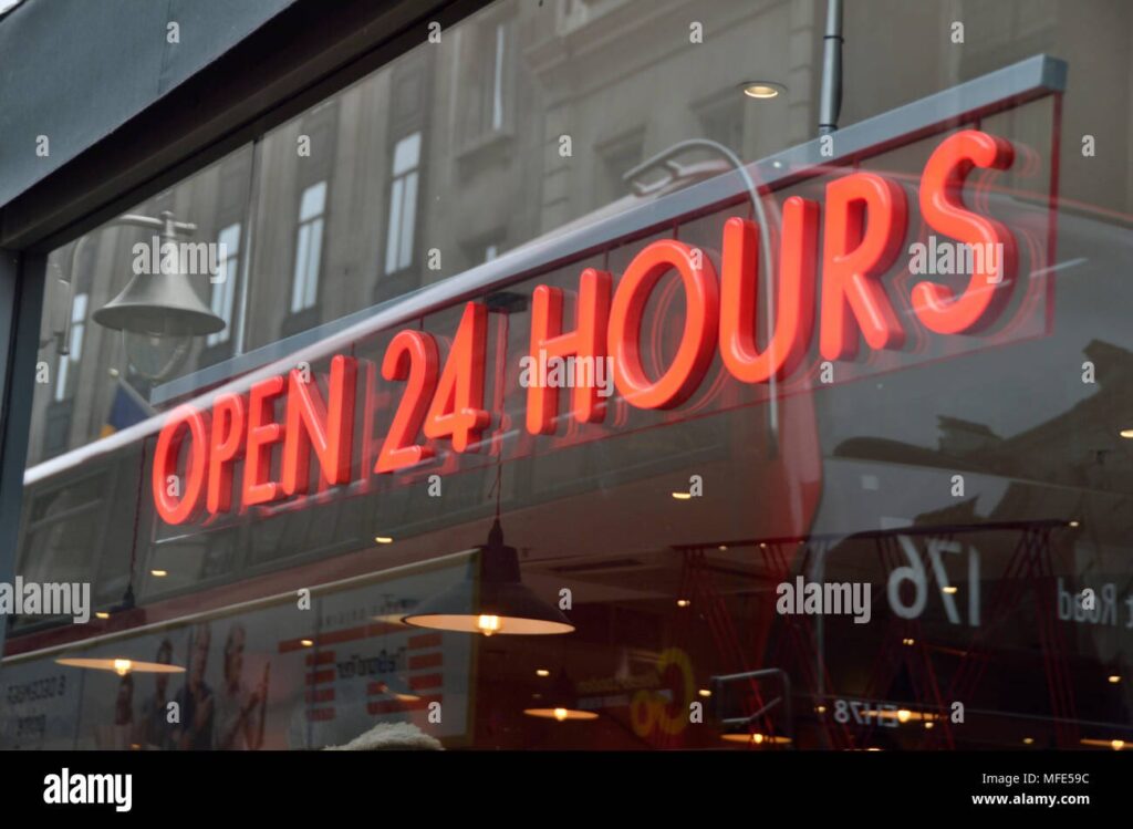 Pizzeria / Imbiss22:00 - 01:00 UhrKann je nach Lage sehr spät sein